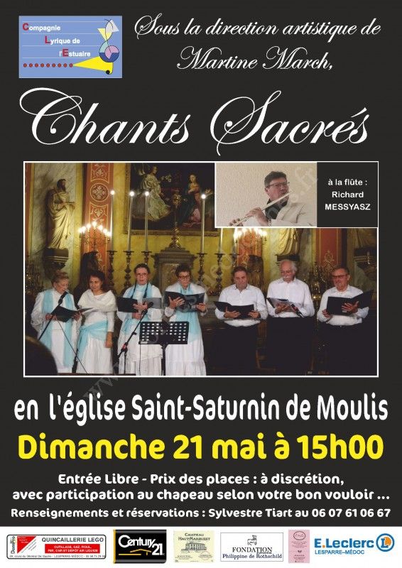 La compagnie lyrique de l’estuaire vous présente un concert de chants sacrés accompagnés d’un piano et d’une flûte sous la direction de Martine March.