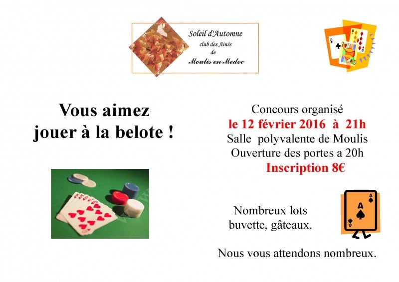 Concours de belote organisé par l'Association Soleil d'Automne.
