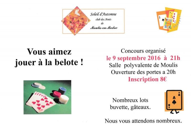 Concours de belote organisé par l'Association Soleil d'Automne.