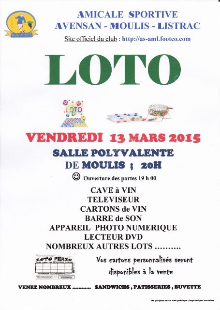 LOTO organisé par l'AS-AML (AMICALE SPORTIVE AVENSAN MOULIS LISTRAC) club de foot.