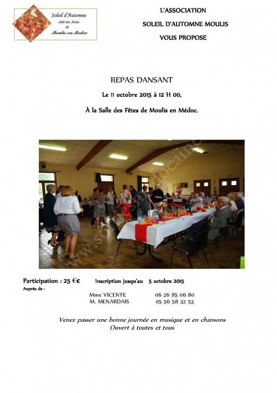 L'Association Soleil d'Automne vous propose un repas dansant.
