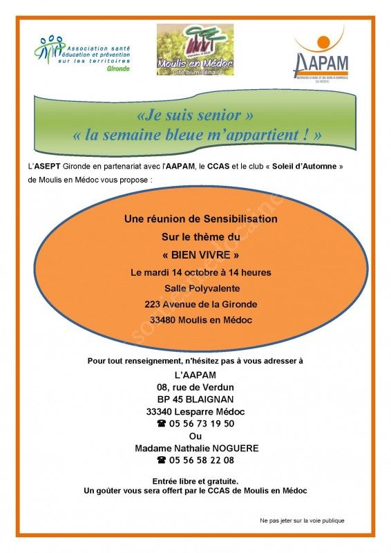 Proposée par l’ASEPT Gironde en partenariat avec l'AAPAM, le CCAS et le club "Soleil d’Automne" de Moulis en Médoc.