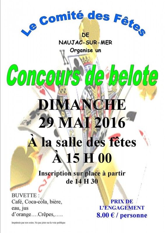 Le Comité des Fêtes de Naujac sur Mer organise un concours de belote !