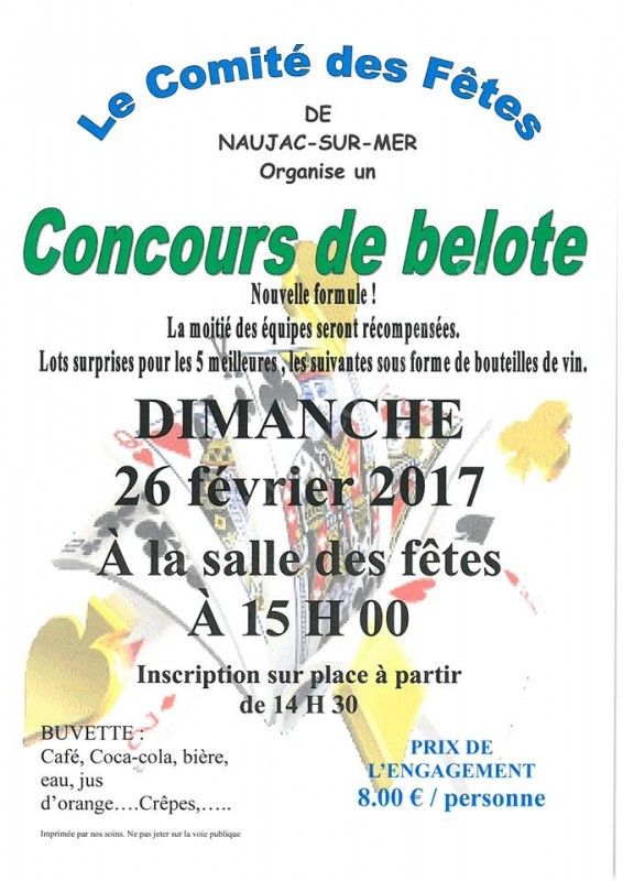 Le Comité des Fêtes de Naujac sur Mer organise un concours de belote !