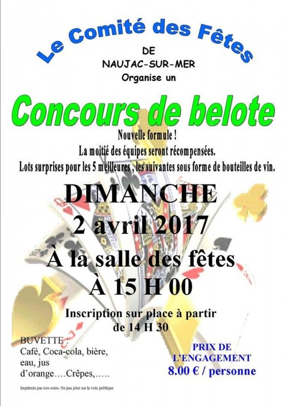 Le Comité des Fêtes de Naujac sur Mer organise un concours de belote !