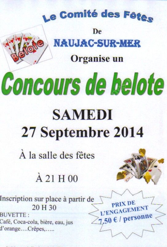 LE COMITE DES FETES DE NAUJAC SUR MER ORGANISE UN CONCOURS DE BELOTE