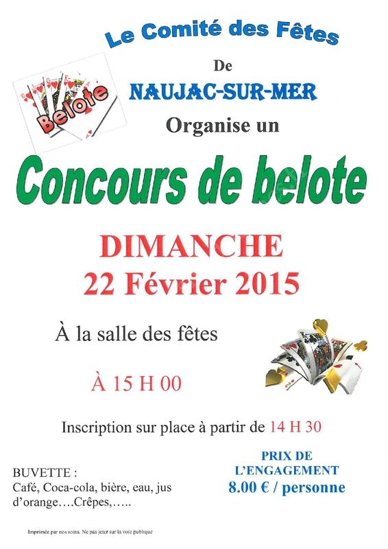 Le comité des fêtes de Naujac sur mer organise un concours de belote.