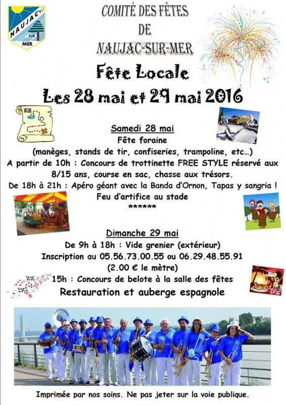 * 9h00 à 18h00 : Vide-grenier (extérieur) / Inscriptions au 05.56.73.00.55 ou 06.29.48.55.91 (2.00€ le mètre)