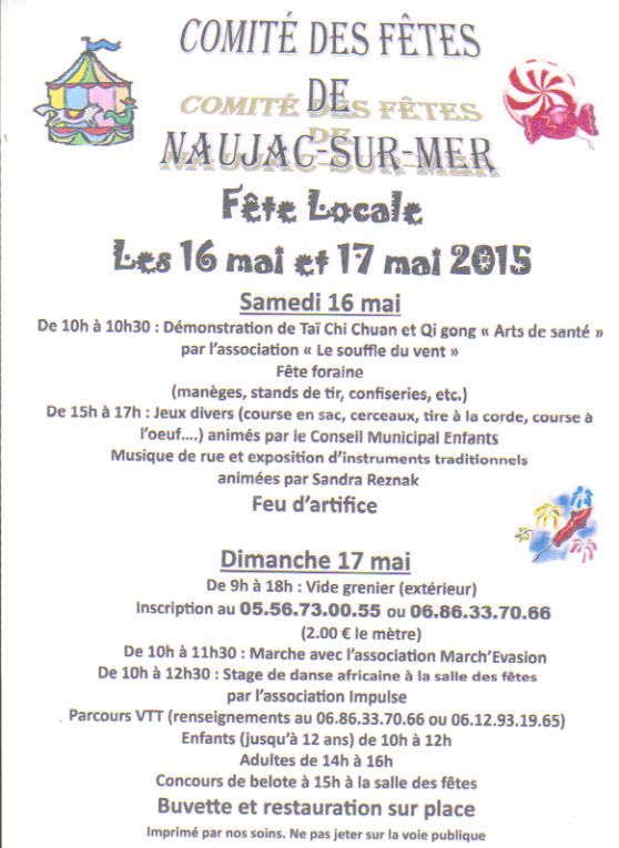 Le comité des fêtes de Naujac sur Mer organise la fête locale (fête foraine et animations sur 2 jours)