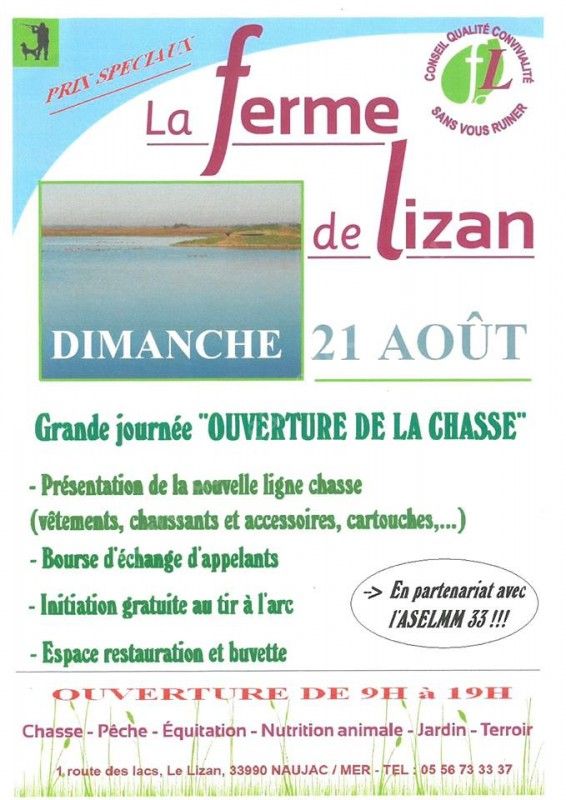 La Ferme de Lizan vous propose le dimanche 21 août 2016 une Grande Journée "Ouverture de la Chasse".
