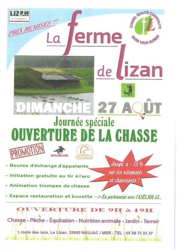 La Ferme de Lizan vous propose le dimanche 27 août 2017 une Grande Journée "Ouverture de la Chasse".