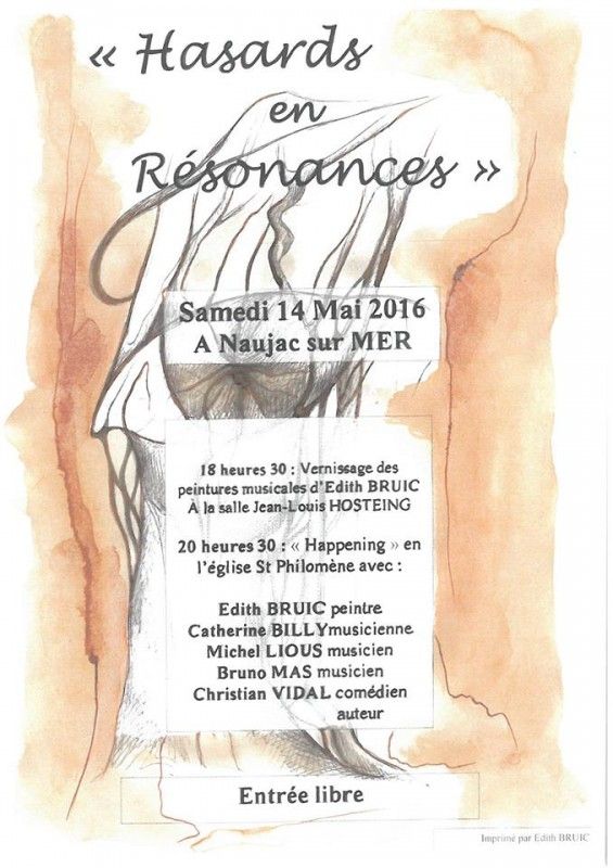 - 18h30 : Vernissage des peintures musicales d'Edith Bruic à la salle Jean-Louis Hosteing.