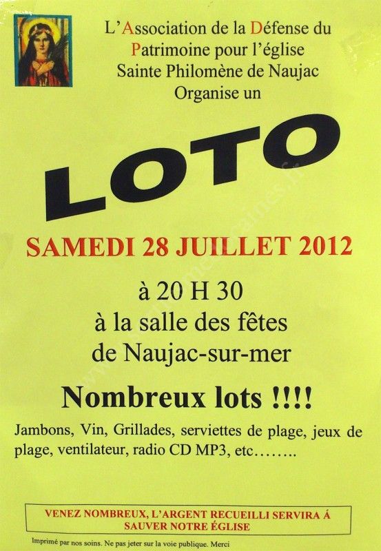 Organisé par l'Association de la Défense du Patrimoine pour l'Eglise Sainte Philomène de Naujac.
