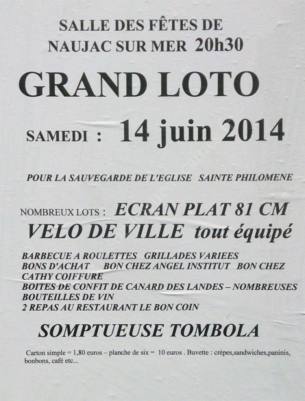Loto pour la sauvegarde de l'Eglise Sainte-Philomène.