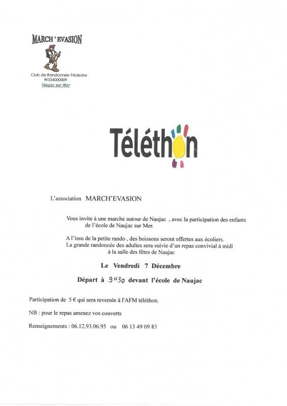 L'association March'Evasion vous invite à une marche autour de Naujac, avec la participation des élèves de l'école de Naujac-sur-Mer.
