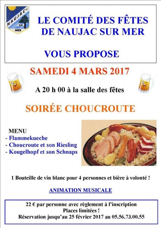 Soirée Choucroute avec animation musicale organisée par le Comité des Fêtes et animée par l'orchestre PINK KILLER'S
