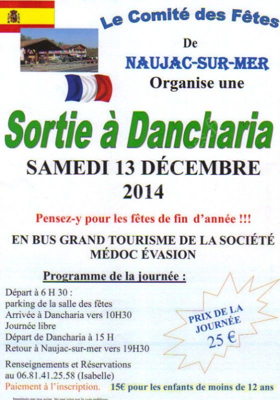 le comité des fêtes de naujac sur mer organise : une sortie a dancharia