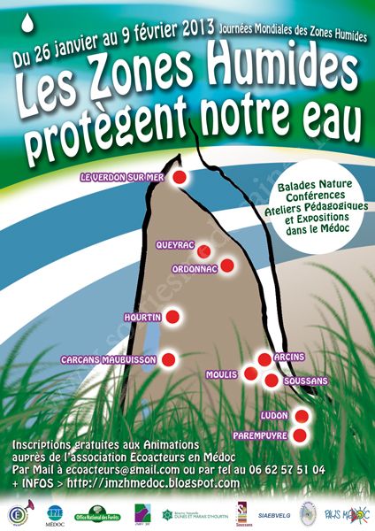 Le territoire du Médoc regorge de nombreux sites en zones humides. Cet événement sera l'occasion de faire découvrir ces milieux en vue d'améliorer leur prise en compte et de concourir à leur qualité, voire à leur sauvegarde. L'esprit des JMZH s'inscrit dans une démarche de communication, d'échange et de sensibilisation.