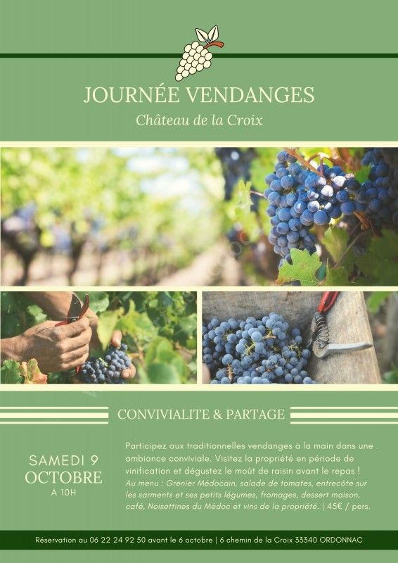 Journée Vendanges : 45€/personne (repas et vin compris)