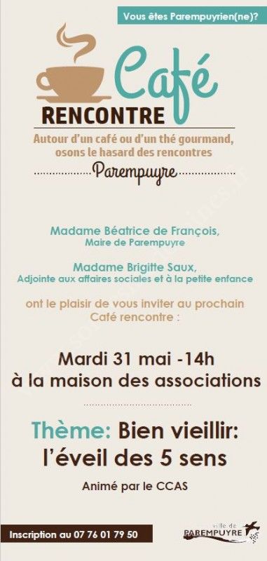 Le CCAS vous donne RDV Mardi 31 mai 2022 pour un Café rencontre sur le thème "Bien vieillir: l'éveil des 5 sens".