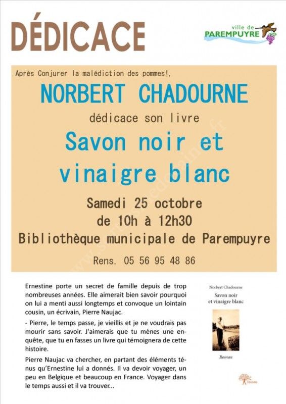 Norbert Chadourne présente son nouveau roman "Savon noir et vinaigre blanc", paru aux éditions Edilivre cet été.