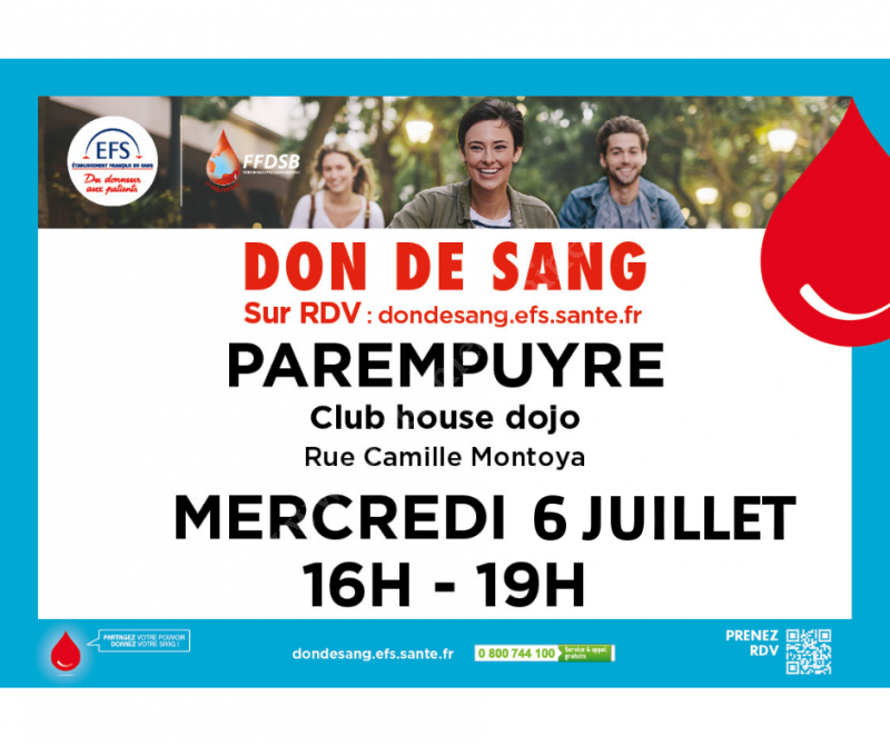 Collecte de sang le mercredi 6 juillet 2022 à Parempuyre.