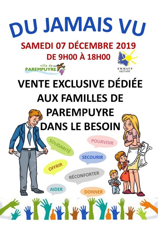 L'association Emmaüs Aquitaine basée à Parempuyre, siège des compagnes et compagnons Emmaüs en Gironde, organise une véritable vente de solidarité dont les bénéfices seront alloués à des familles dans le besoin, en coopération avec la ville de Parempuyre et son CCAS.