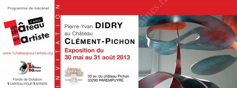 Le Château Clément Pichon & Le Fonds de Dotation 1 Château pour 1 Artiste vous invitent à l'exposition de Pierre Ivan DIDRY au Château Clément Pichon !
