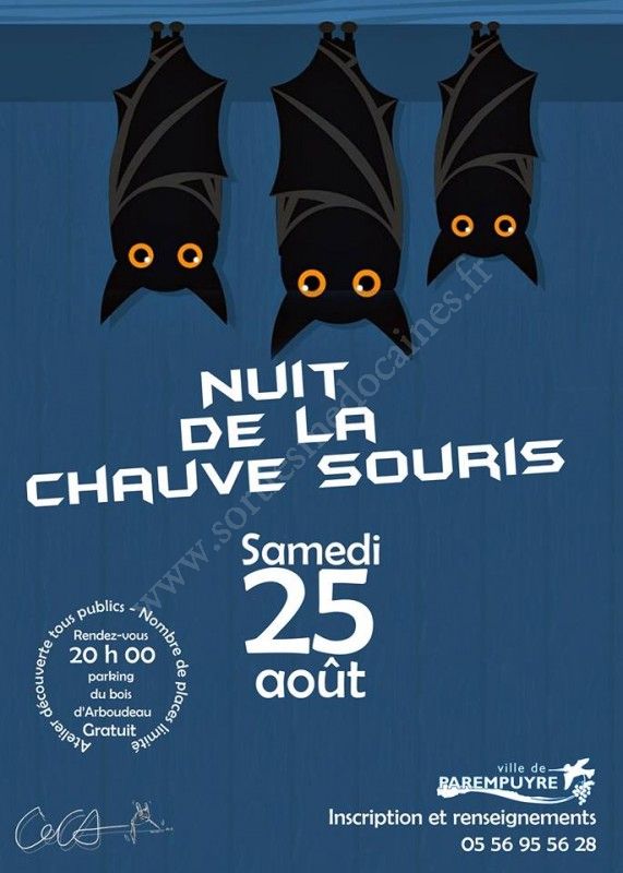 La ville de Parempuyre en partenariat avec le Groupe Chiroptères Aquitaine propose une sortie découverte au bois d’Arboudeau pour la Nuit européenne de la chauve-souris, le samedi 25 août 2018.
