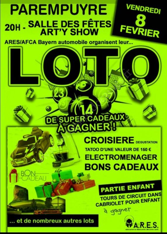 De nombreux lots à gagner dont : Croisière dégustation, Tatoo d'une valeur de 150€, Electroménager, Bons cadeaux, ...