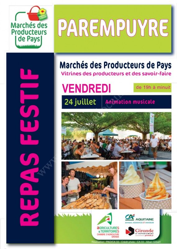 Véritables vitrines des producteurs et des savoirfaire de nos terroirs, les Marchés des Producteurs de Pays® sont composés exclusivement de producteurs. Ils vous permettront de rencontrer en direct les agriculteurs, déguster leurs produits et découvrir des villes et des villages girondins