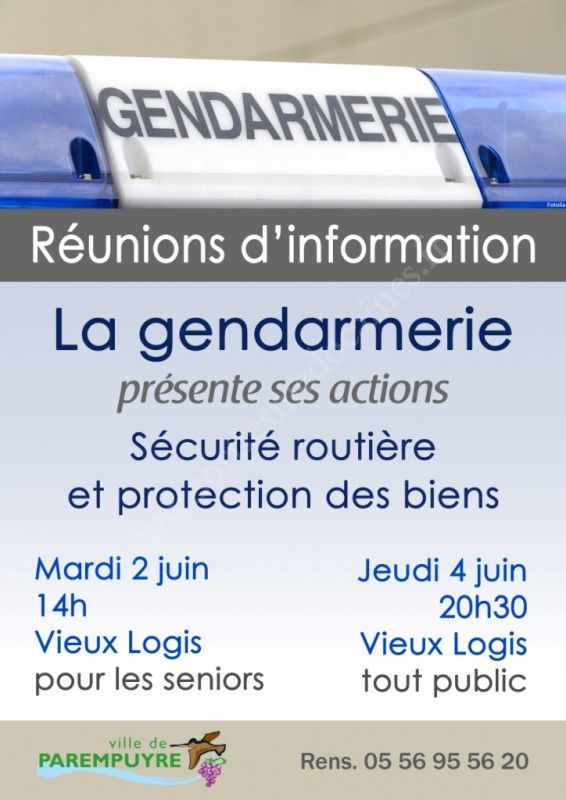 La gendarmerie vous informe sur ses services et ses actions sur Parempuyre lors de cette réunion.