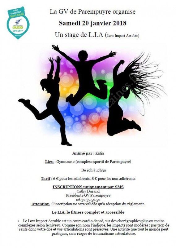La GV de Parempuyre organise un stage de L.I.A. (Low Impact Aerobic)