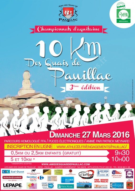 Courses enfants de 0,5 (poussins :2005 à 2006) et 2,5 km (benjamins et minimes, né de 2001 à 2004) sur les quais de Pauillac.