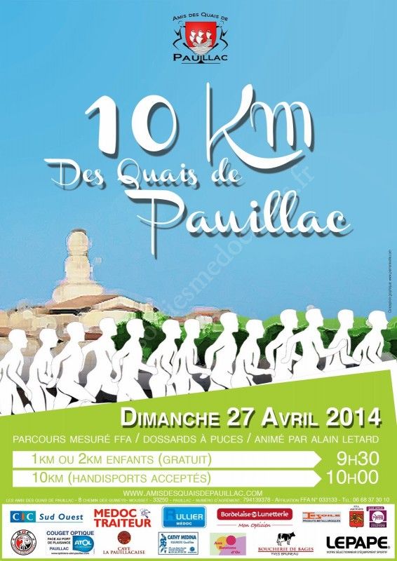 Retrait des dossards le dimanche 27 avril 2014 en face de la mairie de Pauillac à partir de 8h00 (jusqu’à 30 minutes, dernier délai, avant le départ de chaque course).