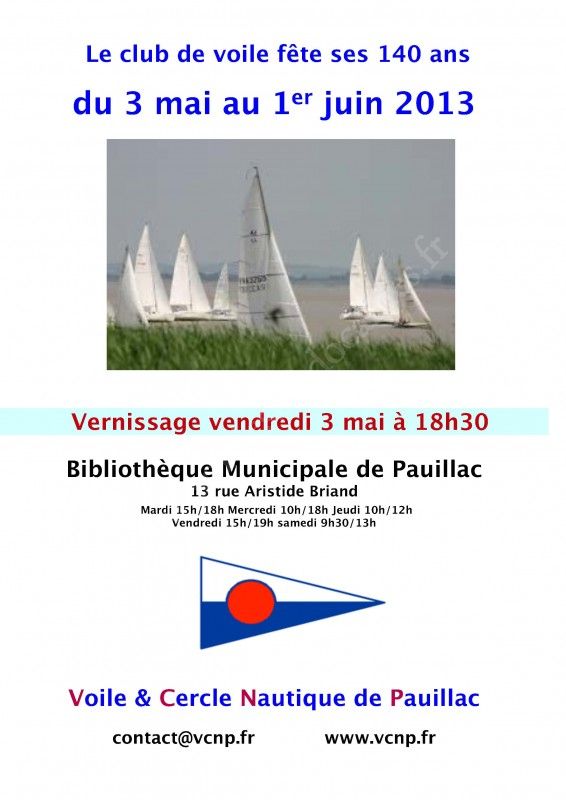 Exposition organisée par le club de voile (VCNP) avec et à la bibliothèque de Pauillac où elle restera pour un mois.