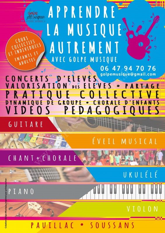 Retrouvez ici toutes nos activités pour cette rentrée chez Golpe Musique sur Pauillac et Soussans :