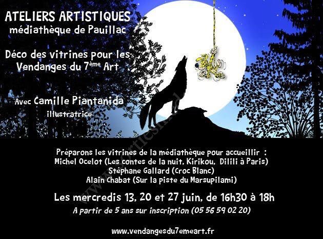 Venez nombreux préparer les vitrines de la médiathèque pour les Vendanges du 7ème Art avec Camille Piantanida, afin d'accueillir Michel Ocelot (Les contes de la nuit, kirikou, Dilili à Paris), Stéphane Gallard (Croc blanc), Alain Chabat (Sur la piste du Marsupilami).