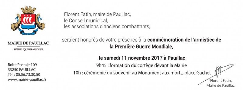 - 10h00 : Cérémonie du souvenir au monument aux morts, place Gachet
