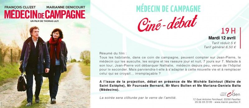 A l'issue de la projection, débat en présence de Me Michèle Saintout (Maire de Saint-Estèphe), Mr Fourcade Bernard, Mr Marc Bollen et Me Mariana-Daniela Balta (médecins).
