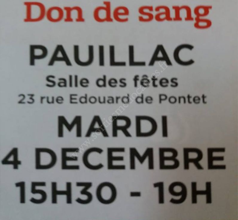 Venez donner votre sang à Pauillac le mardi 4 décembre 2018, vous pourrez ainsi sauver des vies !!!