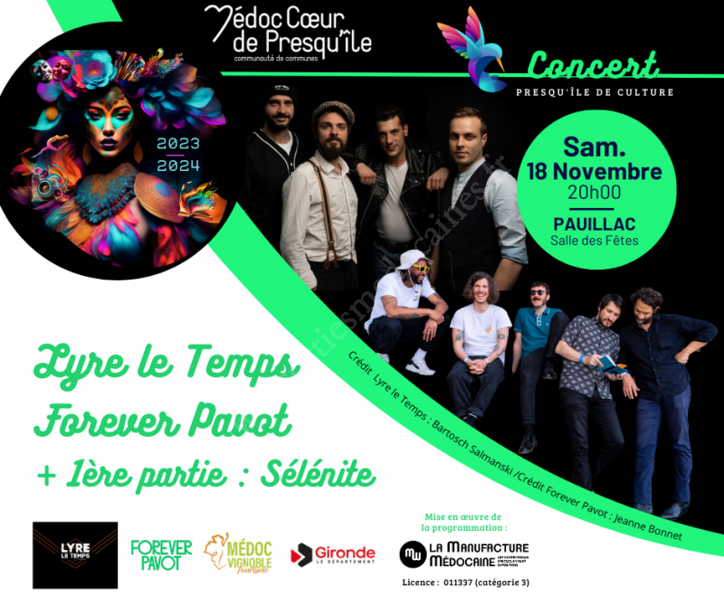Concert : Forever Pavot, Lyre le Temps + 1ʳᵉ partie : Sélénite dans le cadre de la Saison Culturelle Presqu'île de Culture 2023-2024