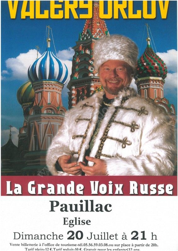 Venez découvrir la grande voix russe de Valéry Orlov pianiste et chanteur d'une amplitude exceptionnelle. Il vous interprétera des prières cosaques, des pièces romantiques, un mélange de tradition musicale classique russe et de musique tzigane.