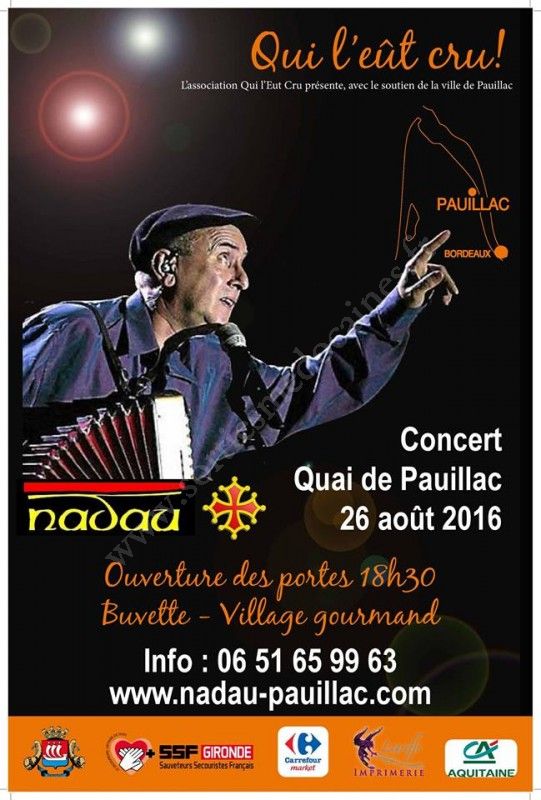 Bandas (La Banda les Amuses Gueules de Gujan Mestrasqui) de 19h00 à 21h30, concert de Nadau à 21h30, bandas pour terminer la soirée jusqu'à 1h00.