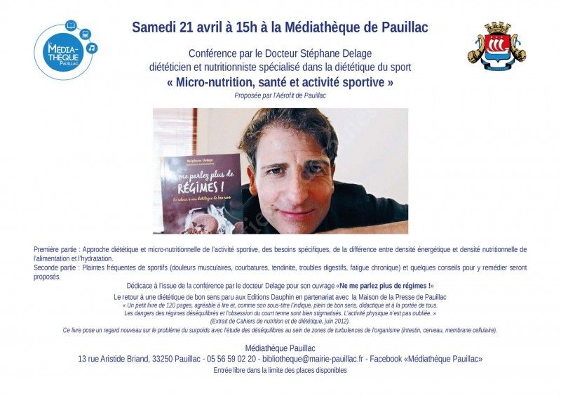 L'association AEROFIT Pauillac vous propose la rencontre avec le Diététicien nutritionniste Stephane Delage le Samedi 21 avril 2018.