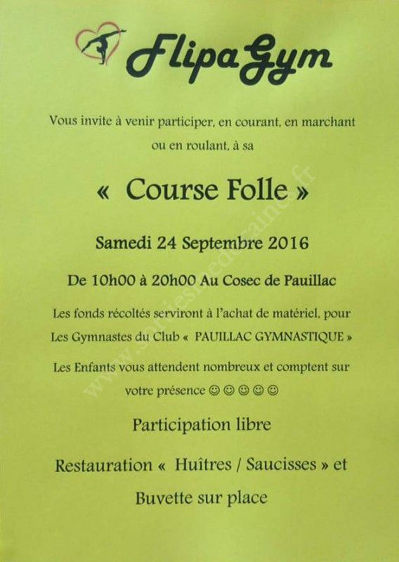 Flipa Gym vous invite à venir participer, en courant, en marchant ou en roulant à sa "Course Folle".