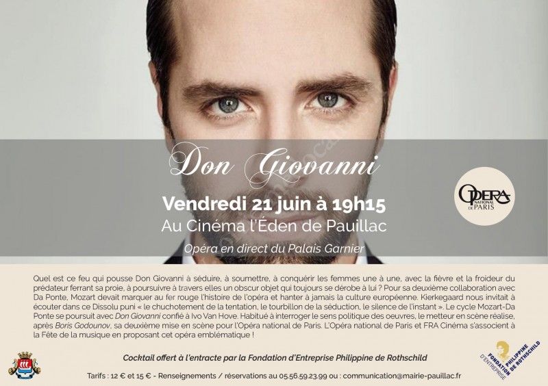 Rendez-vous vendredi 21 juin 2019 au cinéma l'Éden pour fêter la musique avec Don Giovanni !