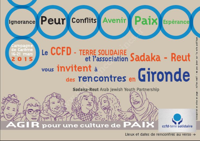 Elles vont témoigner de leur travail de volontaires engagées dans le projet de leur association, SADAKA REUT – "Amitié" en arabe et en hébreu – qui a pour objectif de rapprocher Juifs et Arabes d'Israël dans le but d'y construire une société civile fondée sur l'égalité, la tolérance, le multiculturalisme et le respect des droits humains.