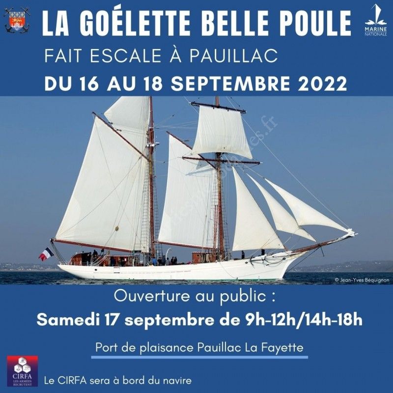 La Goélette BELLE POULE, navire école de la Marine Nationale et filleule de la Ville de Pauillac fera escale au port de plaisance.
