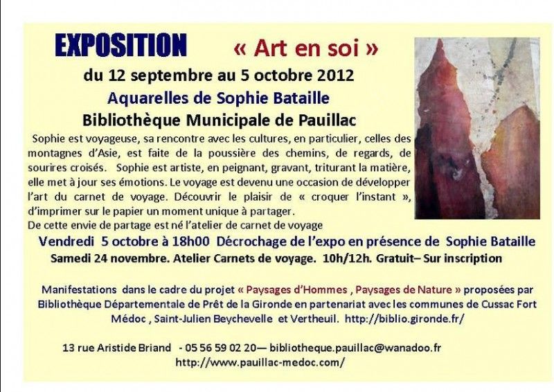 Décrochage de l'exposition en présence de Sophie Bataille le vendredi 5 octobre à 18h.